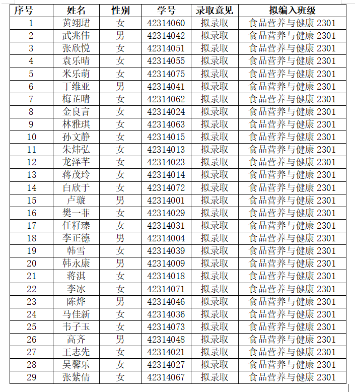 二、食品营养与健康专业员工名单